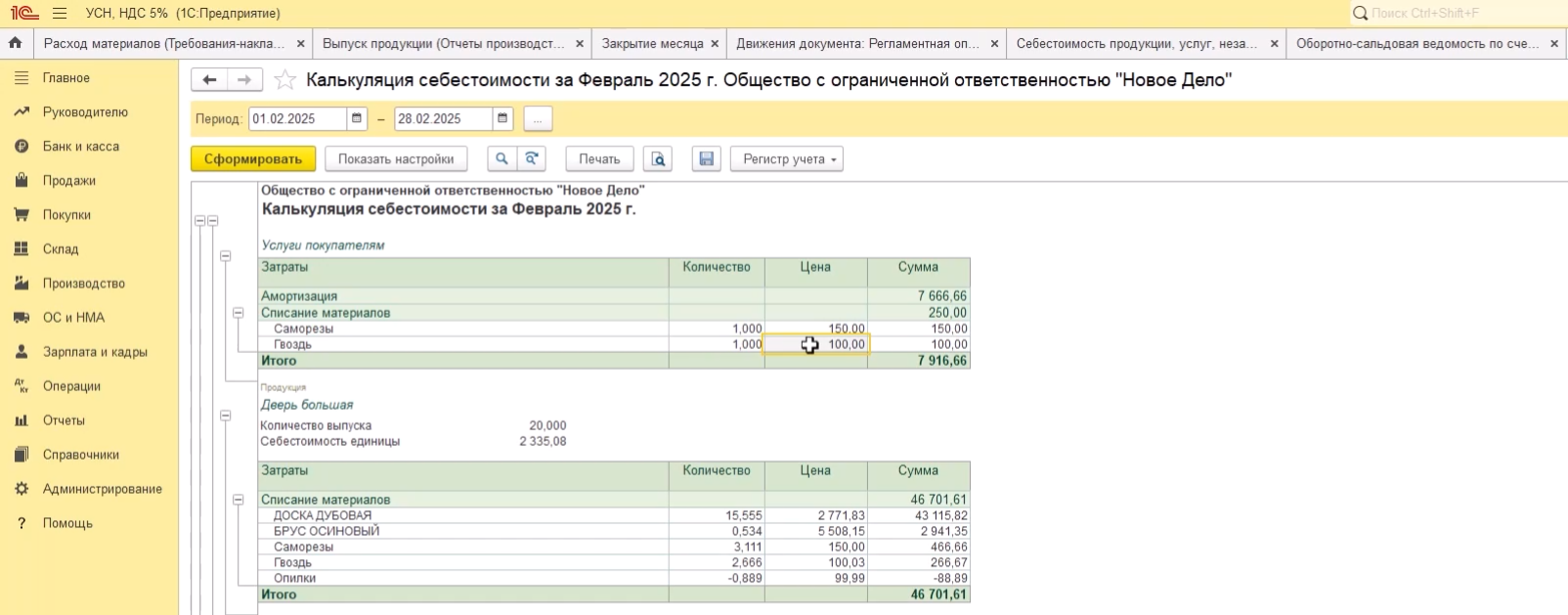 Вы не просто смотрите лекции — вы выполняете все действия в базе: настраиваете учётную политику, вводите документы, формируете КУДиР, рассчитываете налоги и закрываете месяц.